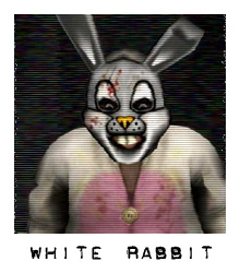 The White Rabbit is, hence the name, a person dressed as a white rabbit. His job in Starkweather's films is to lure people into traps to be ambushed and killed.
